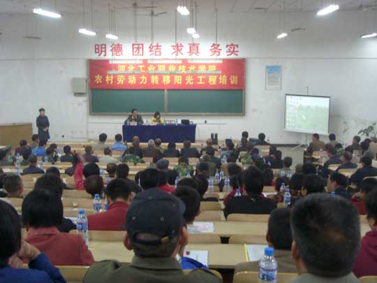 面对严峻的经济形势,在部分企业提高用工技能专业化要求的情况下,为提升农民就业、创业意识,促进农村剩余劳动力转移到非农产业,增加农民收入,石家庄市劳动和社会保障局与我院紧密联系,按照“政府推动、单位主办、部门监管、农民受益”的原则,抓好周边农民就近转产转岗就业工作。我院也积极整合相关教育教学资源,利用现有师资力量开展惠及农民的“阳光工程”建筑工程类技能培训工作,为当地经济发展和新农村建设提供有力保障。